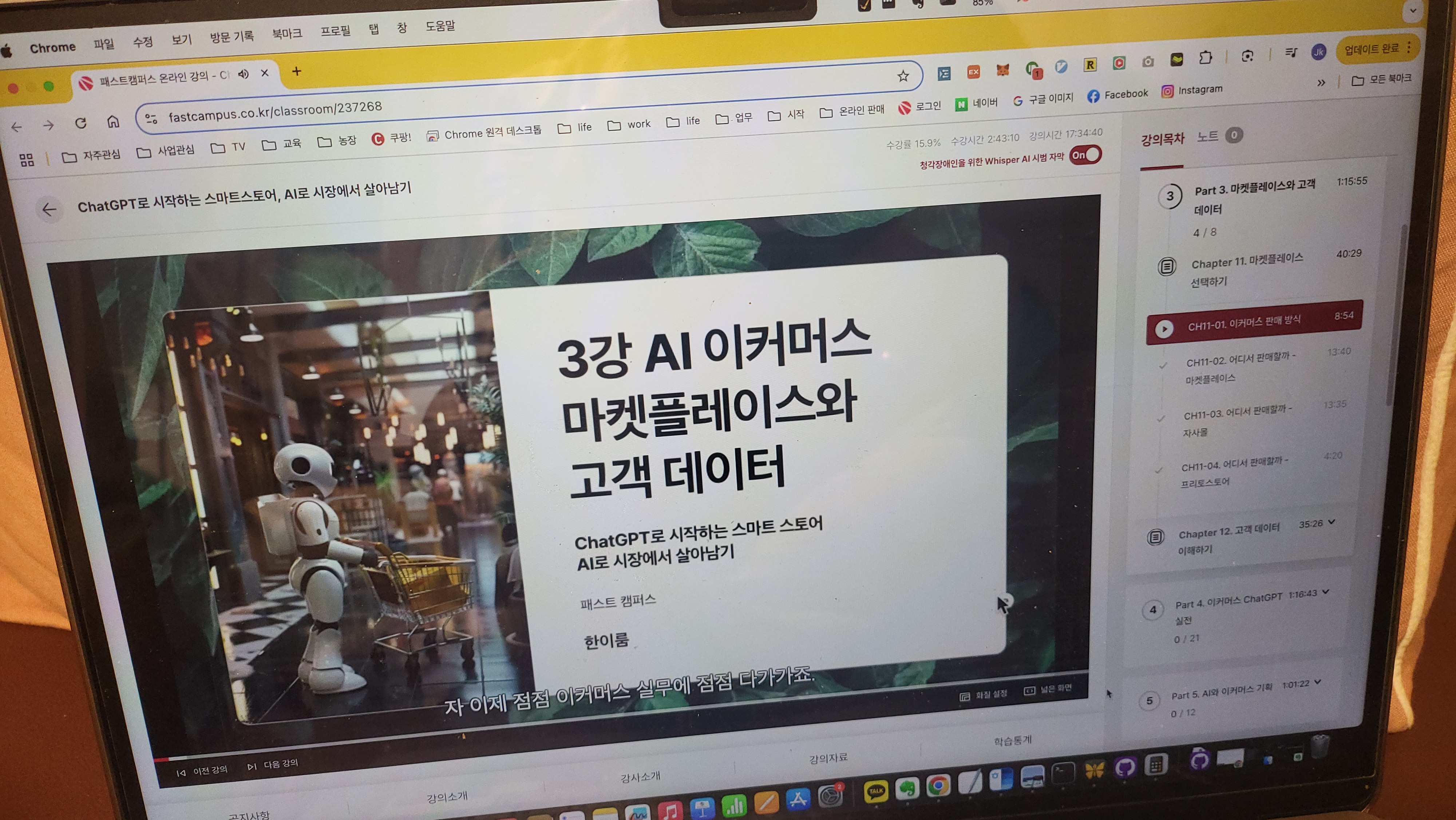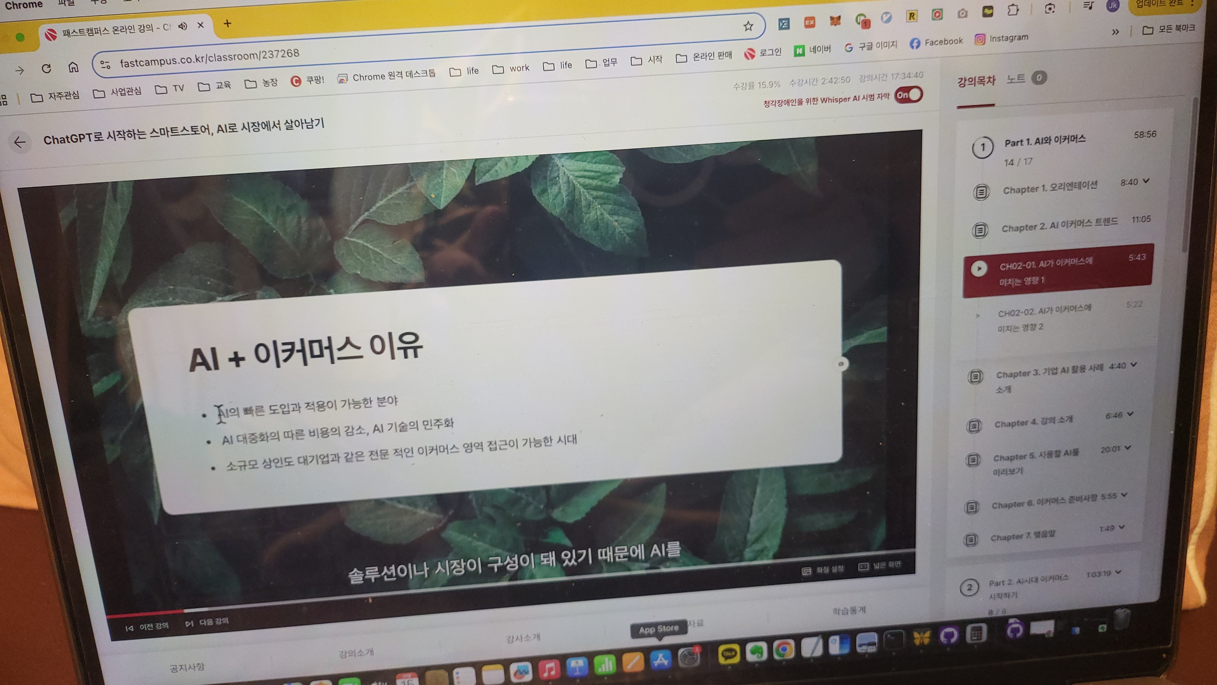 강의에서 가장 인상적인 부분은 스마트스토어의 기초적인 이해였습니다. 스마트스토어의 설정, 상품 등록, 주문 관리 등 기본적인 운영 방법들을 배웠습니다. 이러한 기초적인 지식들이 이후의 AI 통합에 큰 기반이 되었습니다.